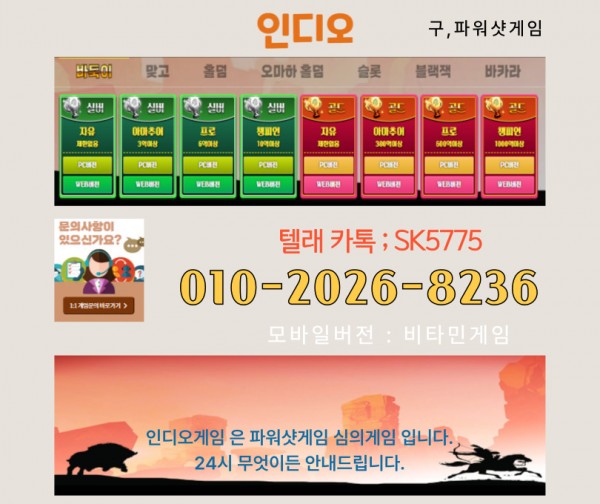 바이브게임 펀치게임/ AA바둑이게임 "인디오게임 (다이아,실버·골드)" 365일 국내 최고 하이엔드 브랜드 업체.